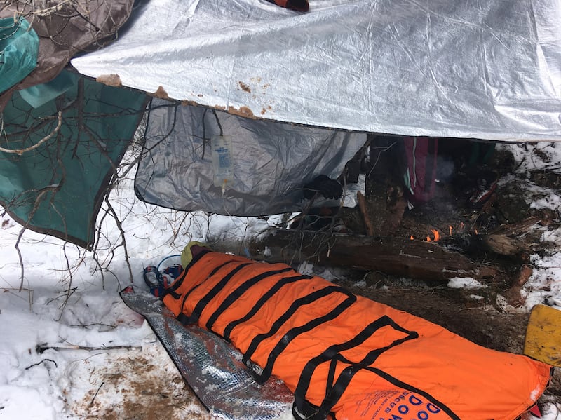 After freeing Osmun, rescue crews wrapped him in a sleeping bag-like material, and then built shelters made of tarps and canopies. Rather than attempt to carry him out of the canyon, the group spent the night on the shore of the creek, hoping the winter storm that was hitting the area would let up enough to allow a Utah Department of Public Safety helicopter to fly to the area to help.