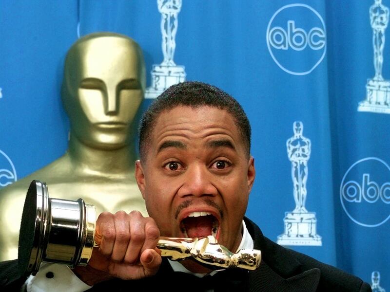 Example: Cuba Gooding Jr.: When Gooding Jr. started getting played off at the 1997 Oscars, he started to thank folks louder and louder, and more and more enthusiastically. As the music swelled and Gooding Jr. shouted his proclamations of love, it felt like the climax of some inspiring movie. He got a standing ovation. If there was an Oscar for getting an Oscar, Gooding Jr. would have earned it.