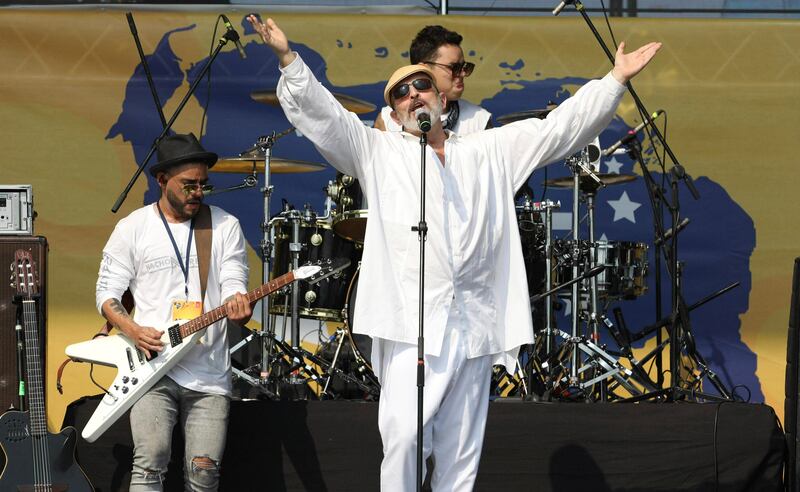 At the concert venue, the feeling was one of collective catharsis, especially for migrants who in recent years have fled Venezuela's economic implosion by crossing into Colombia. Under a scorching sun, those in attendance waved Venezuelan flags, squirted water at each other and swayed to music by marquee artists including Colombia's Carlos Vives and Mexican rock band Mana as well as a host of Venezuelan performers.