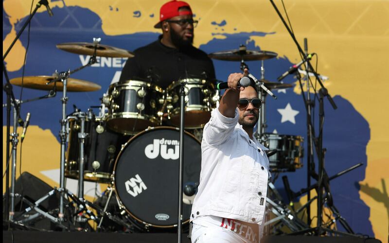 But once he arrived at the giant stage located next to the Tienditas bridge connecting the two countries he was greeted like a rock star himself. Thousands of Venezuelans shouted "Juan arrived! Juan arrived!" when they spotted him donning a white shirt and accompanied by a large contingent of Colombian security as he made himself through the front of the crowd.
