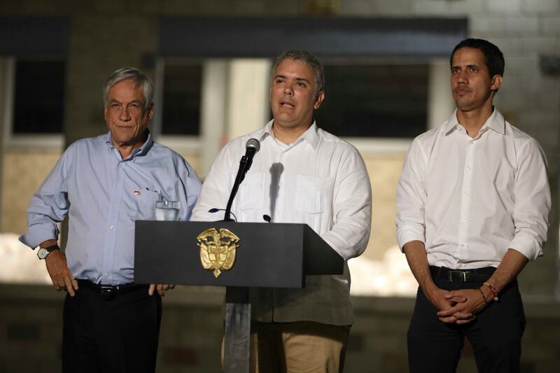 After the concert concluded, Guaido spoke alongside Duque and Pinera at the warehouse where the aid is being stockpiled. He said he was able to circumvent Maduro's travel ban only with the help of the Venezuelan armed forces, whose loyalty to Maduro has so far been impossible to break and will once again be tested Saturday.