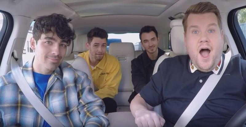 The clip is of Corden picking up each of the Jonas Brothers during Carpool Karaoke. After realizing he just picked up all three Jonas brothers, Corden said, "Wait. Hang on. Is what I think is happening, is it happening?"