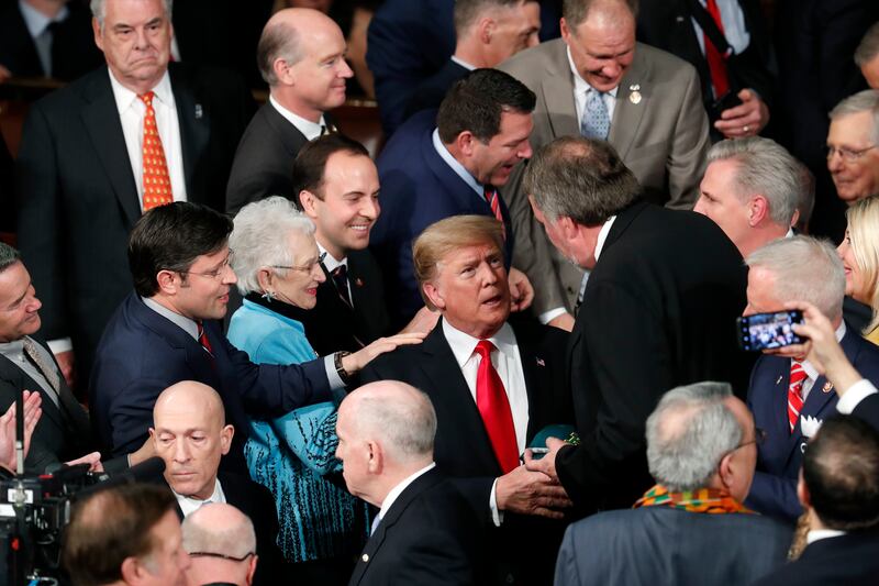 Looming over the president's address was a fast-approaching Feb. 15 deadline to fund the government and avoid another shutdown. Democrats have refused to acquiesce to his demands for a border wall, and Republicans are increasingly unwilling to shut down the government to help him fulfill his signature campaign pledge. Nor does the GOP support the president's plan to declare a national emergency if Congress won't fund the wall.