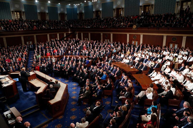 Trump accepted no blame for his role in cultivating the rancorous atmosphere in the nation's capital, and he didn't outline a clear path for collaborating with Democrats who are eager to block his agenda. Their opposition was on vivid display as Democratic congresswomen in the audience formed a sea of white in a nod to early 20th-century suffragettes.