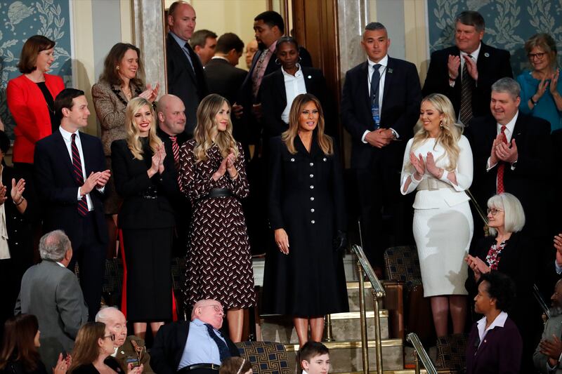 Trump's guests for the speech included Alice Marie Johnson, a woman whose life sentence for drug offenses was commuted by the president, and Joshua Trump, a sixth-grade student from Wilmington, Delaware, who has been bullied over his last name. They sat with Mrs. Trump during the address.