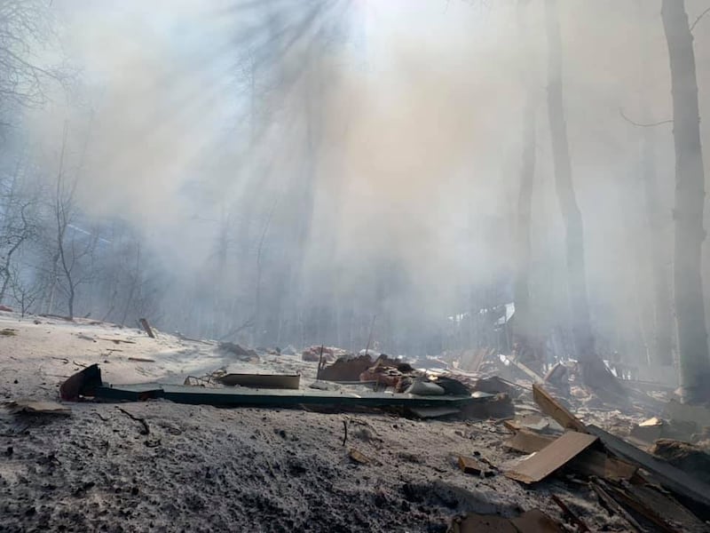 Following the explosion, the cabin was immediately engulfed in flames. The blast blew debris great distances, fire officials said.