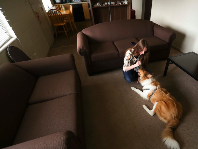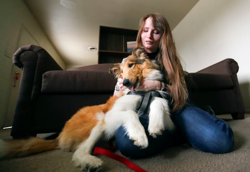 In high school, Thayne was in a car accident that left several of her friends seriously injured and another person dead, and she has since struggled with anxiety, depression and PTSD. Her symptoms worsened after her sister died from an illness in October. Thayne asked the therapist she’d been seeing for several years whether an emotional support dog might help. She got Dusty after her therapist agreed and provided a letter.