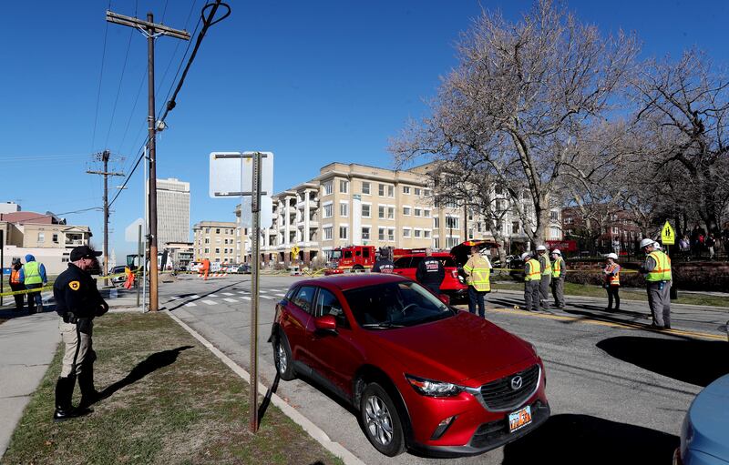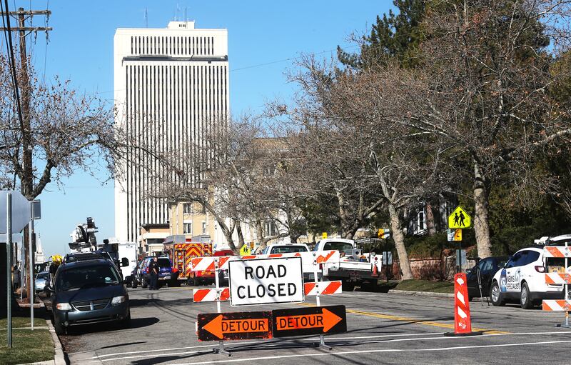 The evacuation area ran from First Avenue to South Temple, and about half of A Street. A nearby Montessori school was determined to be in a safe area and was not evacuated.