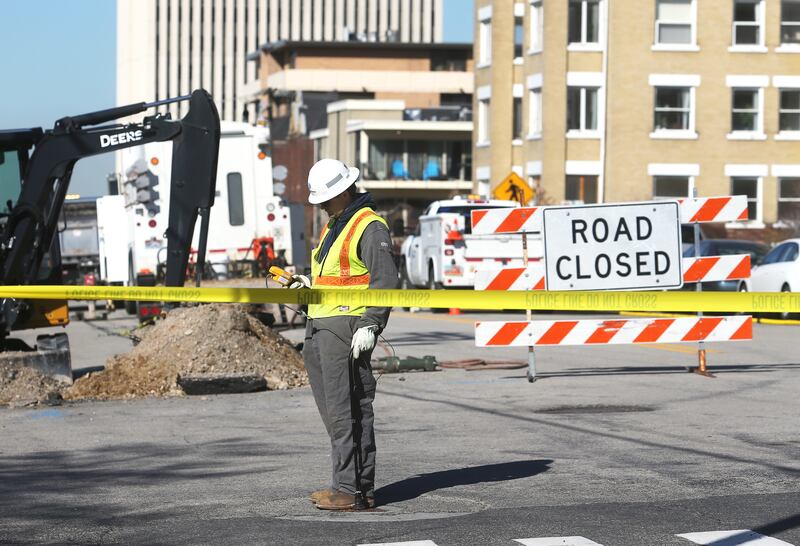 Officials were investigating what caused the gas line break between A Street and 136 East about 7 a.m. Dominion Energy workers repaired the gas line by about 3 p.m., according to the Salt Lake City Public Utilities. Water was expected to go back on later in the afternoon.