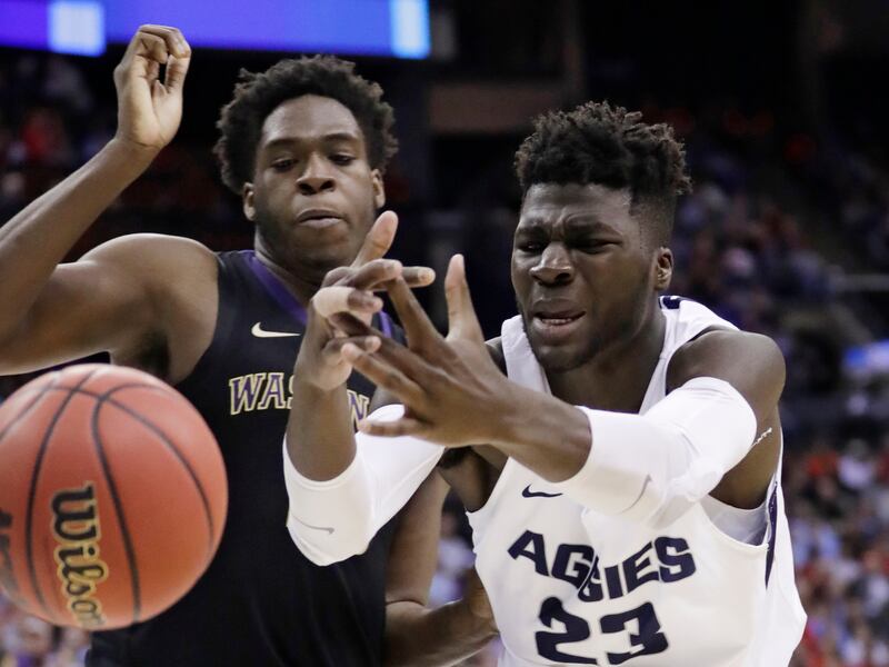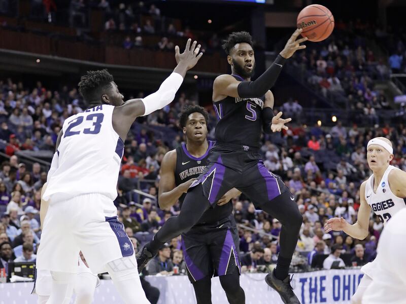 Befuddled by the Huskies’ swarming zone for most of the game, the Aggies (28-7) managed to cut a 13-point deficit early in the second half down to just one with under 10 minutes left. But back-to-back 3-pointers by Washington forward Nahziah “Naz” Carter quickly stretched the Huskies’ lead back to seven points, and Utah State fell further and further behind as the game wore on.