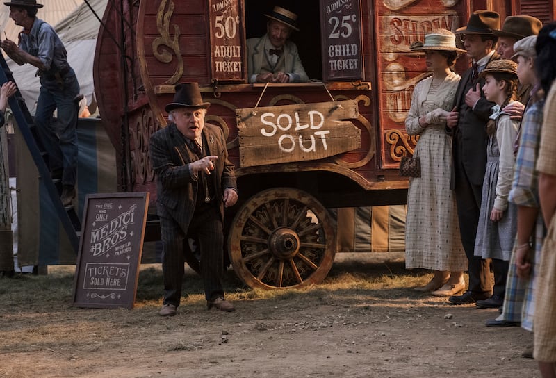The extra running time comes from a host of human characters Burton and Co. have introduced to the plot: Dumbo’s keeper is Holt Farrier (Colin Farrell), a World War I vet who returns to his prewar job at a traveling circus without an arm and must tend to the elephants in order to support his two kids. His daughter Milly (Nico Parker) wants to be a scientist and resents having to live amid the chaos of the entertainment business. His son Joe (Finley Hobbins) is pretty much just along for the ride.