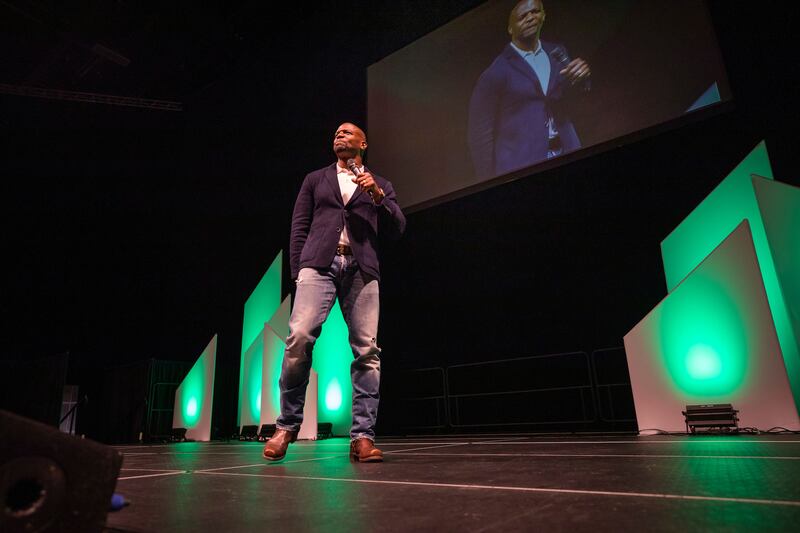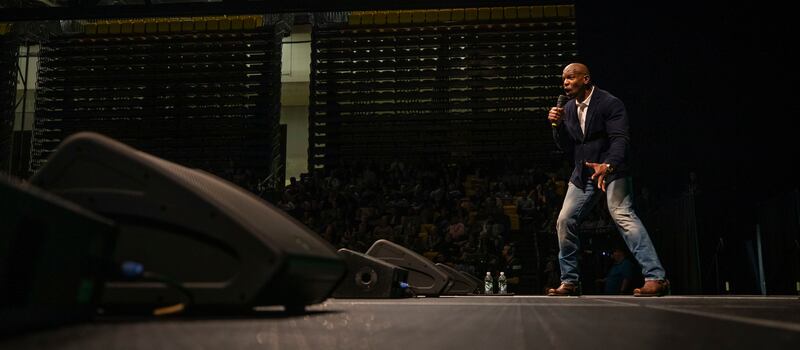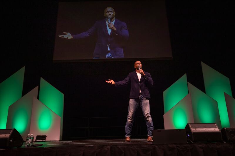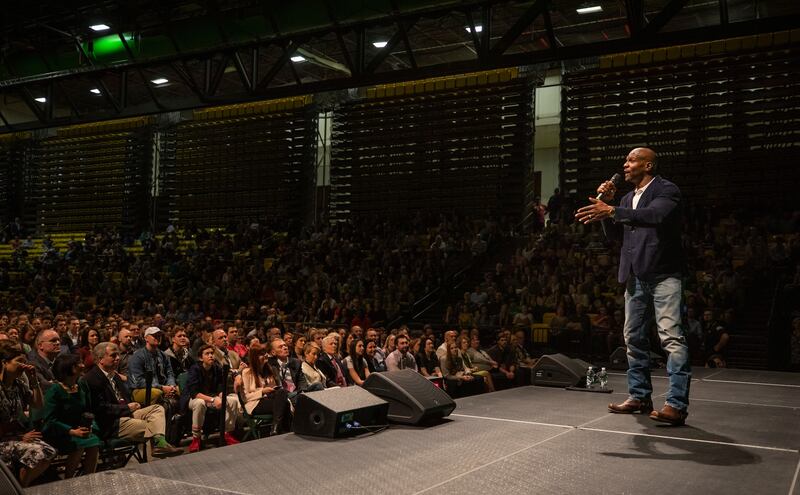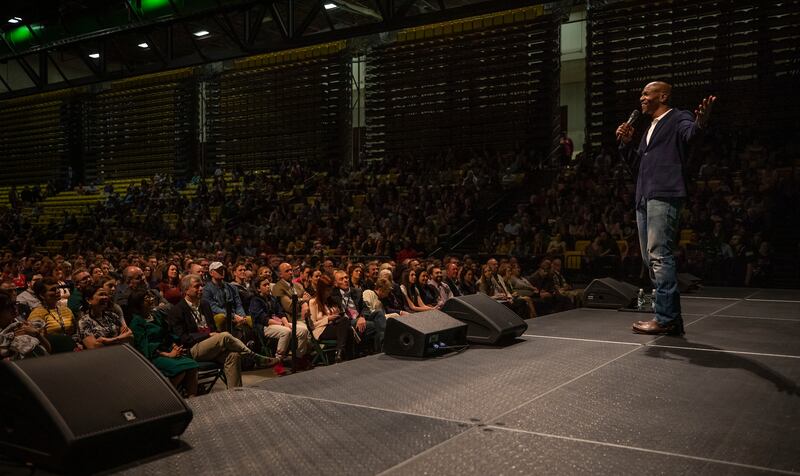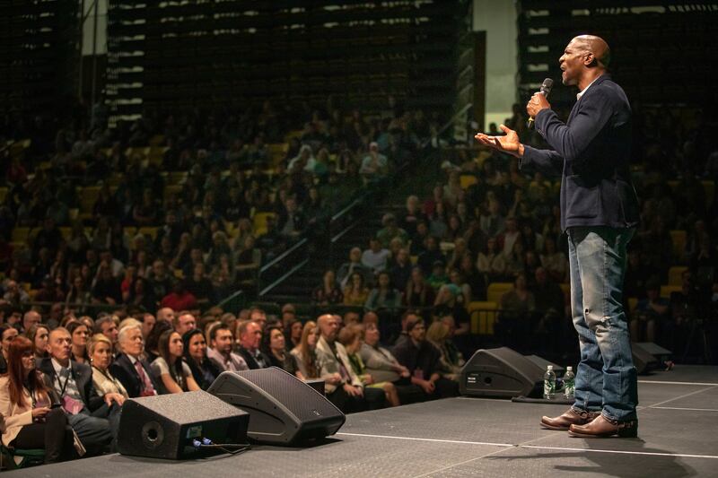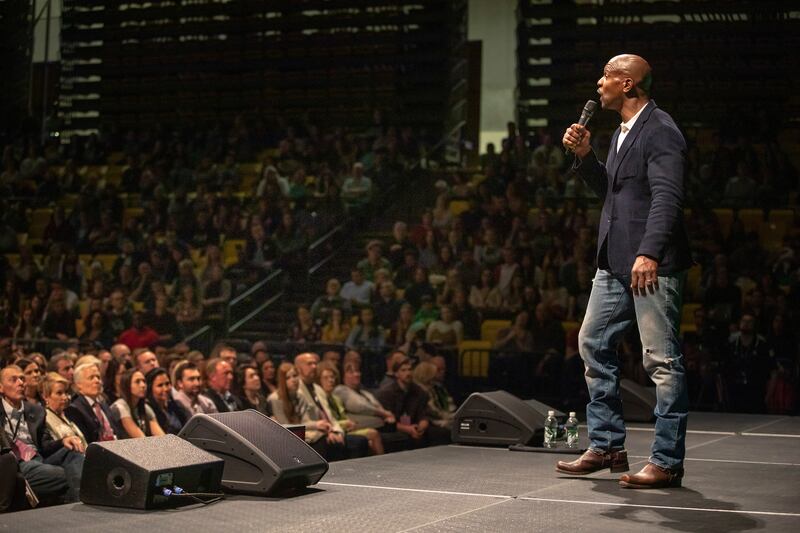 Crews — who played in the NFL for six years and starred in sitcoms including "Brooklyn Nine-Nine" and "Everybody Hates Chris" — was originally slated to speak at the new arts center, but due to high demand the event was moved to the larger UCCU Center. It was estimated at least 1,300 people came to hear him speak.