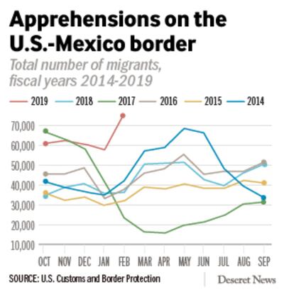 In 2017, the number of migrants intercepted at the border was the smallest in decades, with 310,531 arrests, the Deseret News previously reported. The last time there were so few border arrests was in 1971.
