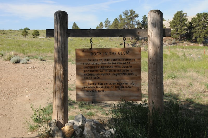 The site was located at the present-day town of Glenrock, Wyoming. A simple, hanging interpretive panel says this site was visited in 1842 by Kit Carson and was named “Rock in the Glen.” That name presumably morphed into “Glenrock,” as it is now called.