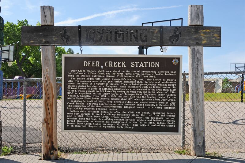 A Wyoming state interpretive panel now identifies the site and notes that it was known as “Deer Creek Station” to travelers on the Oregon-California-Mormon Pioneer Trail from 1857 to 1866. Erastus Snow described Deer Creek as “the most delightful place we have seen since we left the states," stating that the creek or stream was “about thirty feet wide and two feet deep, swift current and clear water.” Another report stated that William Clayton caught two dozen fish in Deer Creek (see "The Mormon Vanguard Brigade of 1847," edited by Ronald Barney, page 169).