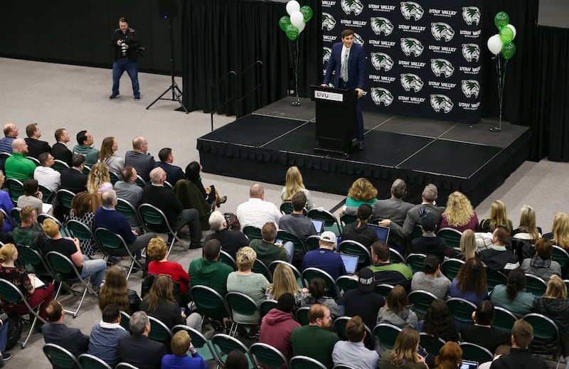 "I could not be more excited to be here," Madsen said at the beginning of his comments, which ushered in the first of several ovations. "... It's an honor to be named as the head coach at UVU."