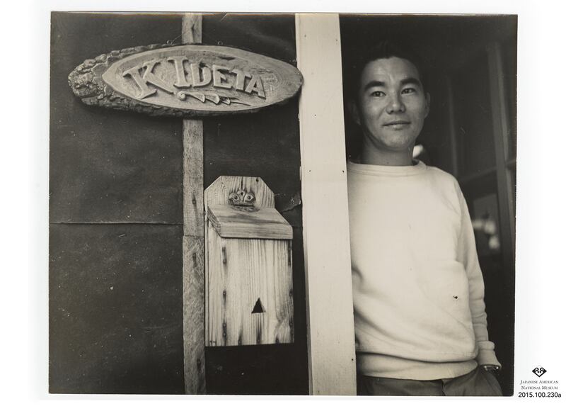 One way Hanami has been able to make connections is through pilgrimages to internment camps, where those with ties to these camps visit to honor loved ones who were imprisoned. Most recently, while attending the Jerome/Rohwer Pilgrimage in Arkansas, Hanami met Sharon Ideta Fukushima, who recognized her father in one of the photos displayed. In the photograph, her father, Takashi Ideta, is standing by a nameplate at the Jerome War Relocation Center. Fukushima had brought that very nameplate in the photograph with her to the exhibit.