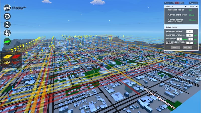 "The project creates a simulation of a potential autonomous air traffic system for Salt Lake City," Young said. "When completed, it will allow UDOT to evaluate things like how many drones can we have safely flying at the same time in a specific area, how fast they can go, how much space does each drone need and how to respond when something goes wrong."