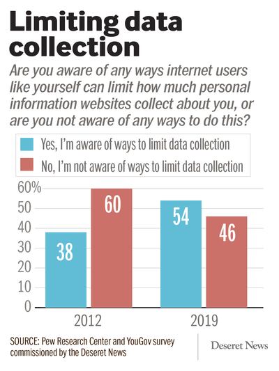 The Deseret News poll conducted April 4-5 also found that close to half — 46 percent — of Americans don’t know how to limit the personal information websites collect about them, though the figure is down from 60 percent in 2012 when the Pew Research Center asked the same question.