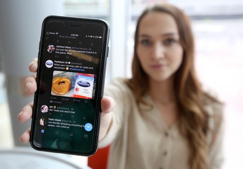 Allie Hill, 22, a senior majoring in accounting at the University of Utah, was surprised to see an advertisement on Twitter for the beverage Pedialyte shortly after texting a friend about it and posting photos with an off-brand version of the drink on Snapchat and Instagram on her way to a workout class.