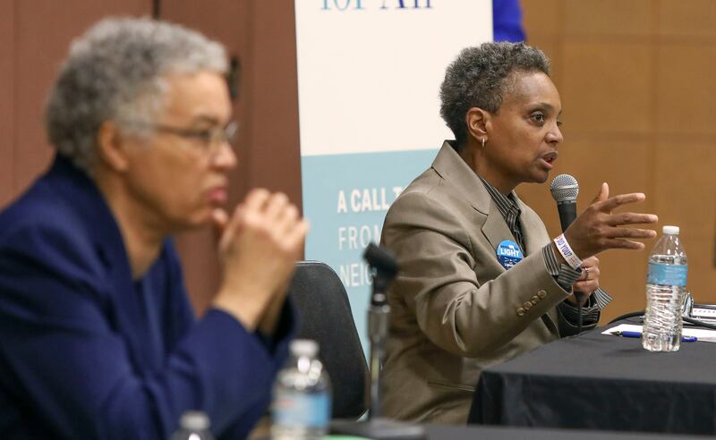 Preckwinkle also tried to cast Lightfoot as an insider for working in police oversight posts under Emanuel and police oversight, procurement and emergency communications posts under Mayor Richard M. Daley.