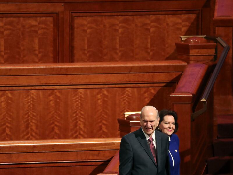 President Dallin H. Oaks, first counselor in the First Presidency, presided over the session, the first of the weekend’s five meetings. The Tabernacle Choir at Temple Square provided the music, singing “Now Let Us Rejoice,” “Press Forward Saints,” “Redeemer of Israel,” “Dearest Children, God is Near You,” “I am a Child of God” and “Rejoice, the Lord is King.”