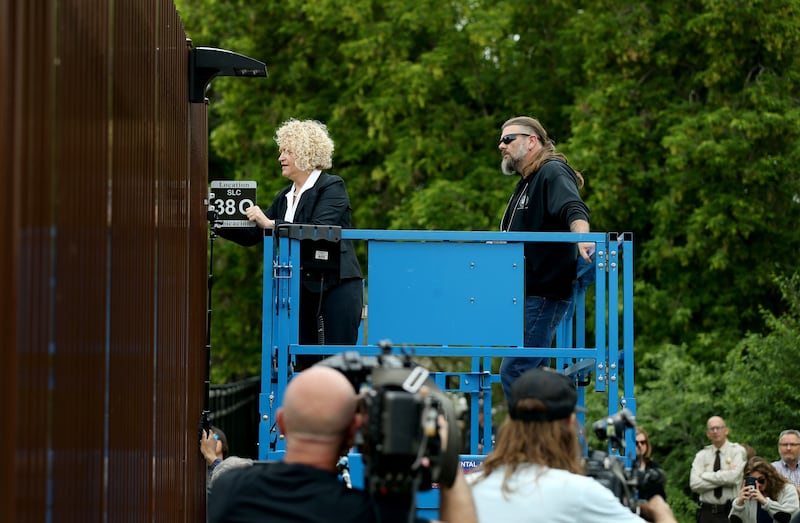 Salt Lake Mayor Jackie Biskupski climbed onto a scissor lift Thursday morning to officially install the first marker — number 38 Q — near the Fisher Mansion. The rest of the markers will be installed within the next month between 2100 South and the Davis County line.