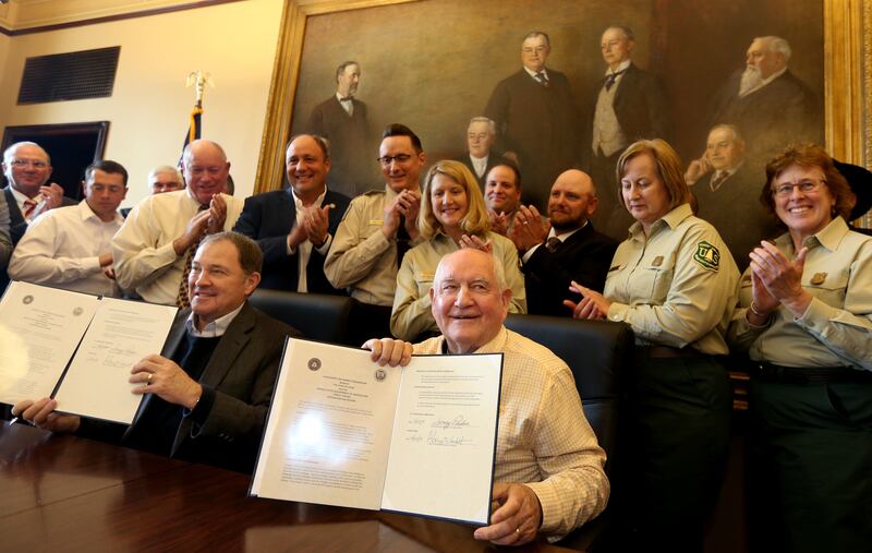 On Wednesday morning, amid a flurry of camera clicks, he inked an historic agreement with Gov. Gary Herbert that forges a new stewardship agreement between the federal agency and Utah for the caretaking of more than 9 million acres of forested lands in the state.