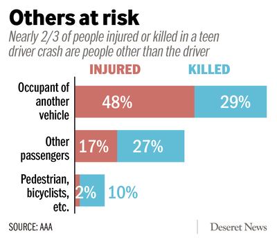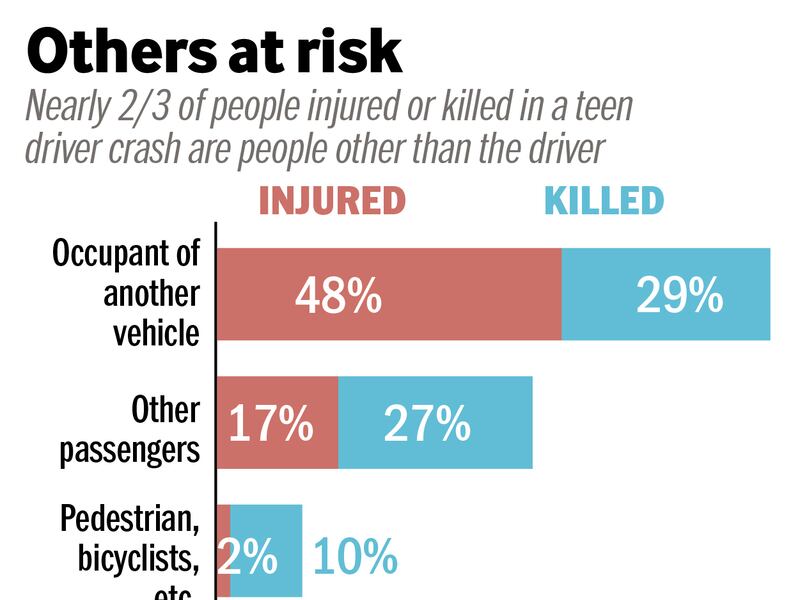 In 2017, research by the AAA Foundation for Traffic Safety found new teen drivers are up to three times as likely as other drivers to be in a crash that kills someone. Most often, crashes involving teens hurt or kill someone else. The American Automobile Association, AAA, says other drivers, passengers and pedestrians are injured or killed in two-thirds of crashes with teen drivers.