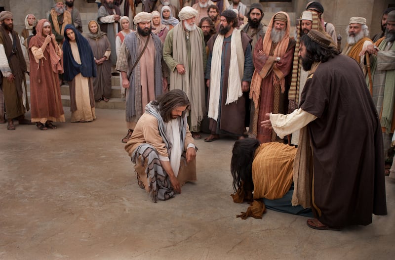 I’ve wondered if Jesus, the Old Testament Jehovah who wrote the Law of Moses with his finger on tablets of stone, was now writing the new higher law with his finger in the dirt.