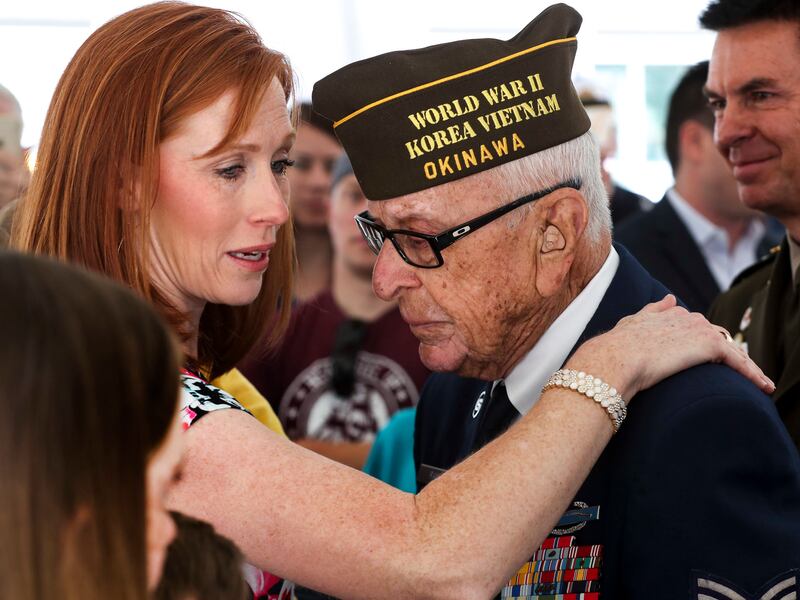 During a dedication ceremony for the Major Brent Taylor Vet Center Outstation, she scanned the veterans in the crowd such as Bob Ramos, who served in World War II, the Korean War and the Vietnam War, and hailed them for their service.