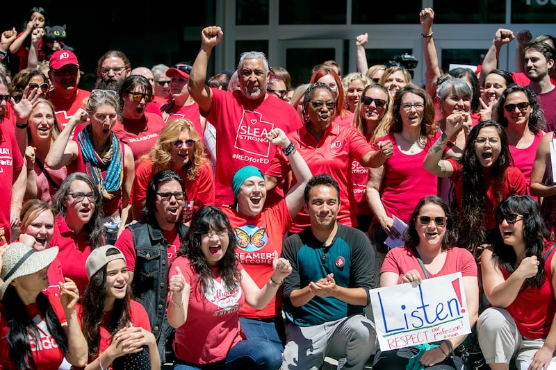 SALT LAKE CITY — Amid an impasse in salary negotiations, about 150 Salt Lake School District teachers rallied Tuesday to ask for more money.