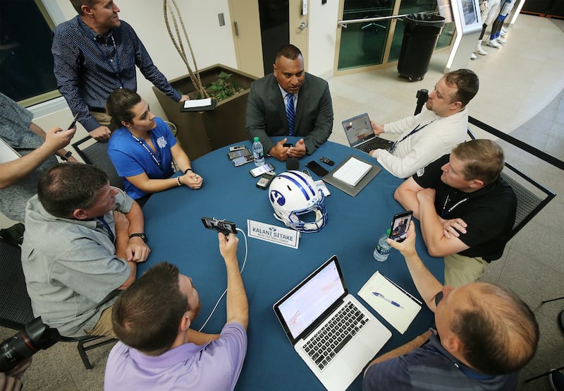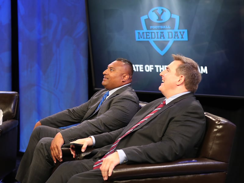 Instead, many were left wondering about the whereabouts of athletic director Tom Holmoe, who was conspicuously absent from media day festivities at the BYU Broadcasting Building.