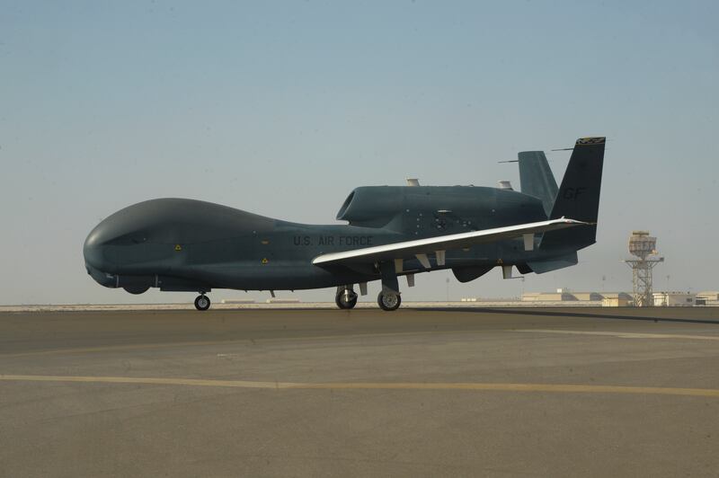 America stations some RQ-4 Global Hawks at the Al-Dhafra Air Base in the UAE, near the capital of Abu Dhabi. Associated Press journalists saw the drones on the base's tarmac during a March 2016 visit by then-Vice President Joe Biden. The U.S. military occasionally publishes images from there of the drones, which have a distinctive hump-shaped front and an engine atop the fuselage.