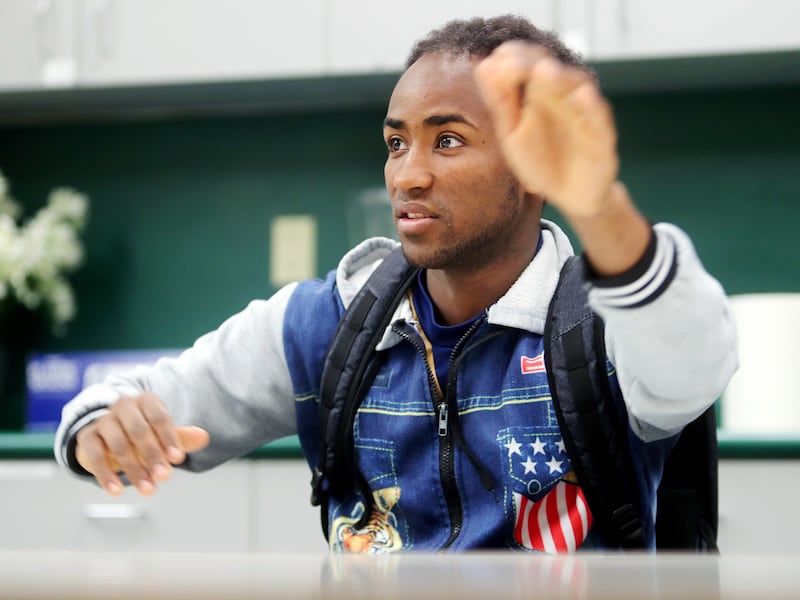 Before starting college, Hagos will continue to take classes to improve his command of English. His primary language is Tigrinya, a Semitic language spoken by people of Eritrea and Ethiopia.