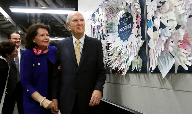 During a VIP reception at the Amway Center on Sunday evening, President Nelson spent a few minutes with the owner of the local business where 49 people lost their lives in a mass shooting three years ago this week.