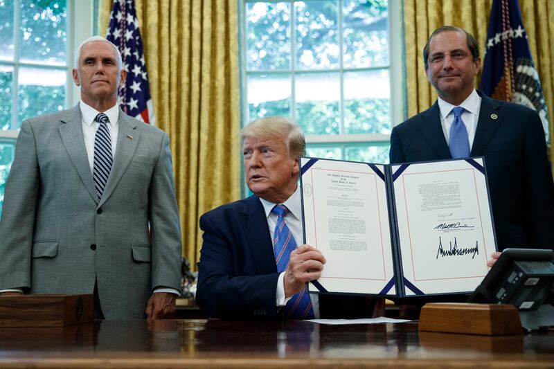 Trump signed the bill in the Oval Office, flanked by Vice President Mike Pence and Health and Human Services Secretary Alex Azar. The emergency legislation was needed to ease overcrowded, often harsh conditions at U.S. holding facilities for migrants seeking asylum, mostly from Central American nations like Honduras and El Salvador.