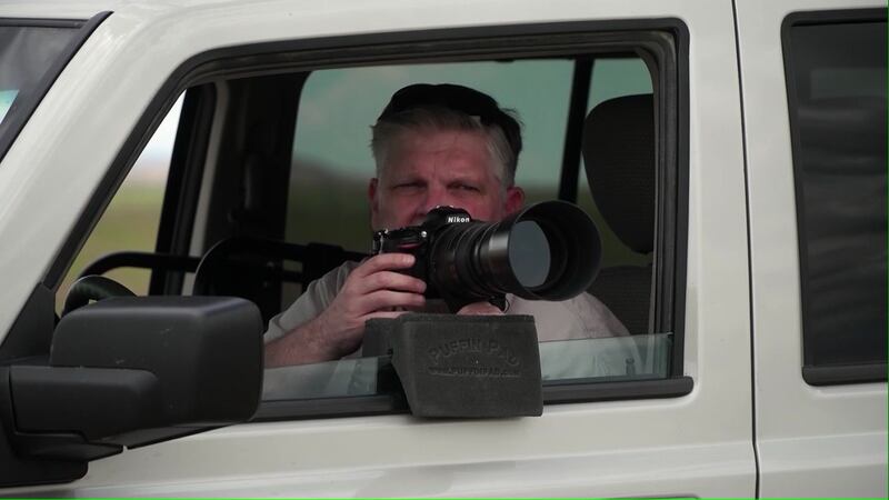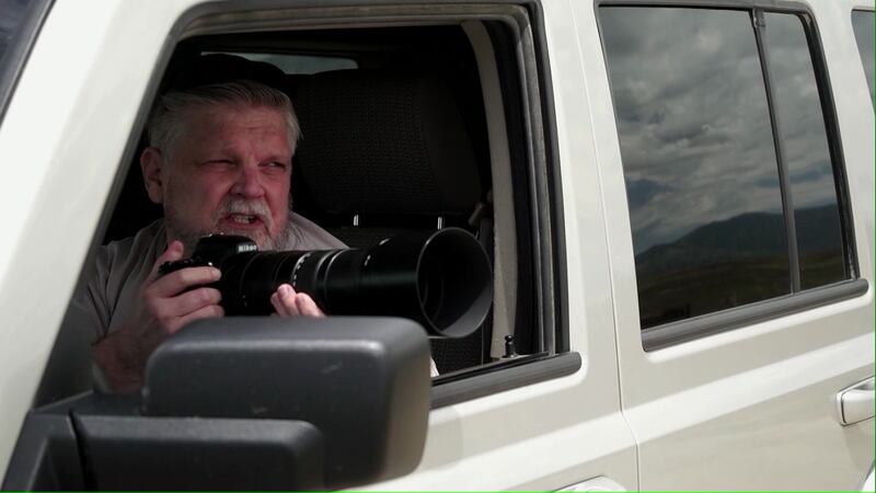 "I love it," he said, clicking away at a waterhole from the seat of his Jeep. "They're easier than people. They're a lot of fun, and they're real active when they come to down to water. That's what makes it fun."