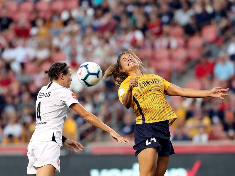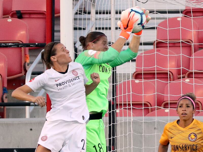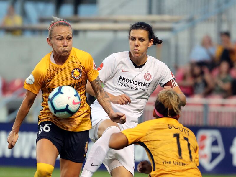 With so many players playing their first game with their club in several weeks, the first part of the game felt disjointed, but the Thorns drew first blood on an excellent volley from outside the box by Sinclair that found the top far-post corner of the net in the ninth minute. It was a bit of bad luck for the Royals as they had just lost midfielder Mandy Laddish to an injury and were playing a player down.