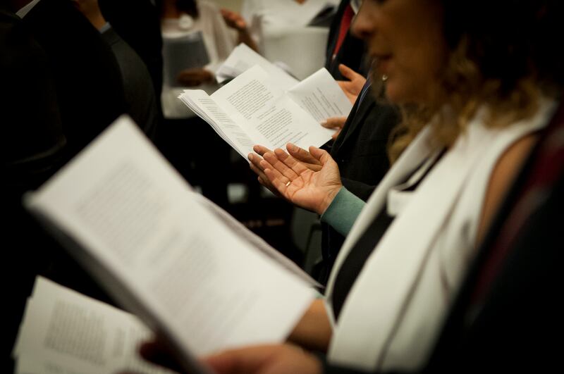 WASHINGTON — The words echoed throughout the historic U.S. Capitol rotunda, comforting those who sang them and startling some of the tourists who'd just stumbled in.