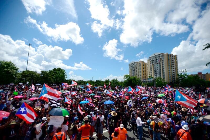 SAN JUAN, Puerto Rico — Waving flags, chanting and banging pots and pans, tens of thousands of Puerto Ricans jammed a highway Monday to demand the resignation of Gov. Ricardo Rosselló in a crisis triggered by a leak of offensive, obscenity-laden chat messages between him and his advisers.
