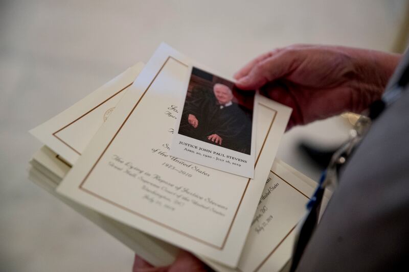 The 99-year-old Stevens died last week after suffering a stroke. Justice Elena Kagan, who replaced Stevens on the court after he retired in 2010, spoke during a brief ceremony before the public was invited to view Stevens' casket at the court and pay their respects.