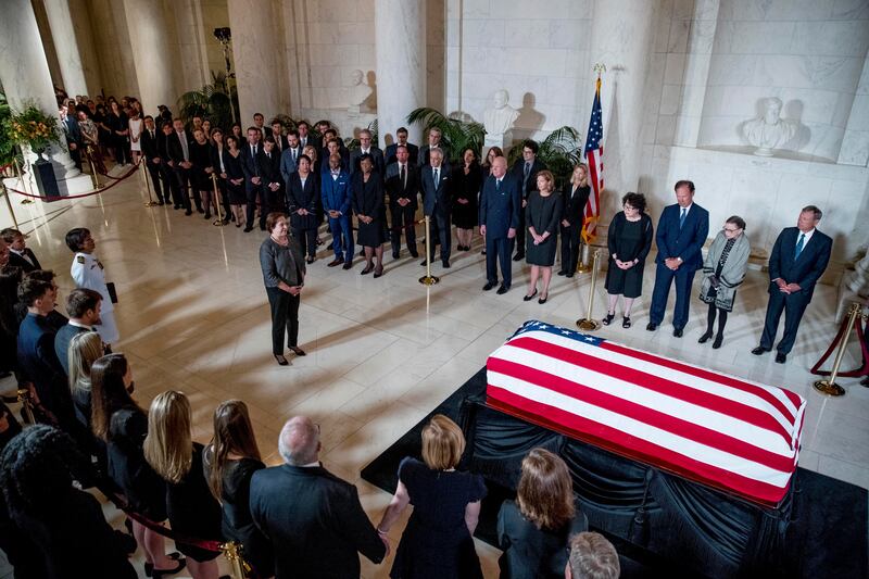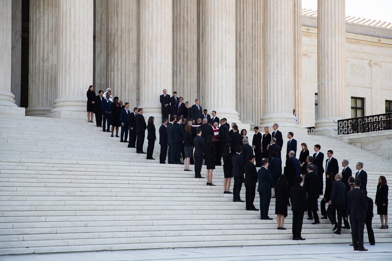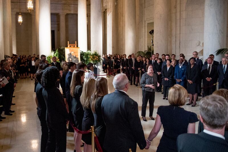 About 100 of Stevens' clerks took turns standing watch over his casket as members of the public filtered by throughout the day. The group of men and women who started their careers working under Stevens includes several judges and lawyers who appear frequently before the Supreme Court.