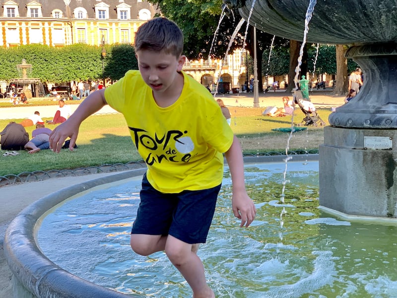 Like the other day, when we were at our apartment in Paris and he absolutely wanted to make a roller-coaster. A roller-coaster inside the apartment. He worked all morning, pulling together sheets and pillows and poufs. (He was laughing at the word pouf. “Pouf!” he’d say, and laugh.) He wanted something that would spin and turn and go places, but this was an apartment after all, and the only materials he had at his disposal were borrowed linens and a floating staircase.