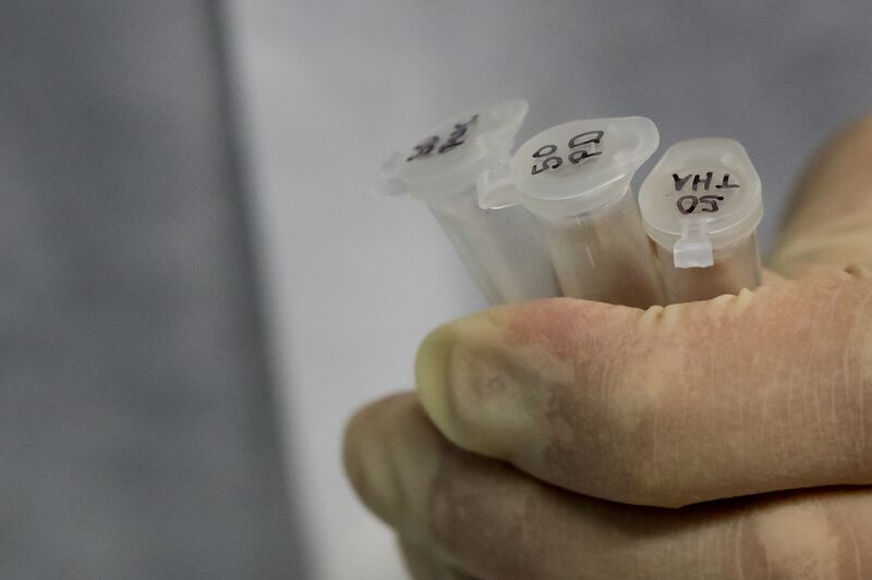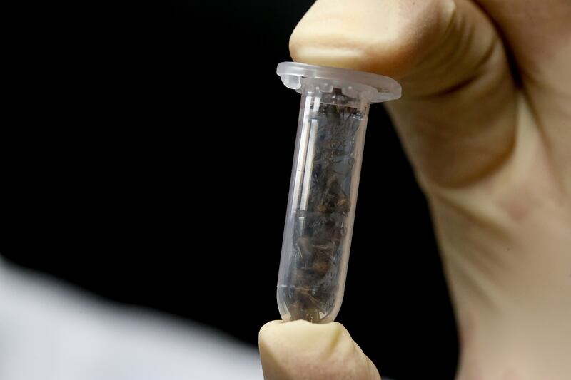 At Southwest Mosquito Abatement and Control, they then put up to 100 of the bugs in a vile, add some liquid and crush them up, among other preparations, before they extract RNA to test for the virus. Ten years ago, they purchased a machine — the most widely used in the U.S. — so they could test the insects themselves, and developed a manual process.