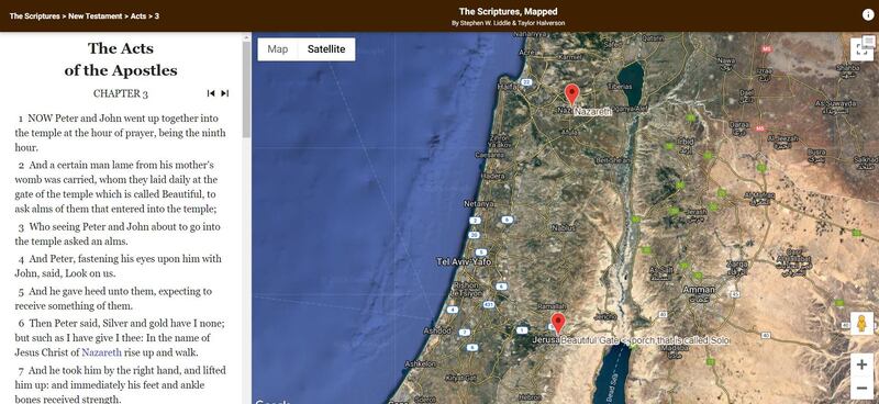 Now you can explore the New Testament, as well as Old Testament and Doctrine and Covenants, chapter by chapter with every location mapped to Google maps.