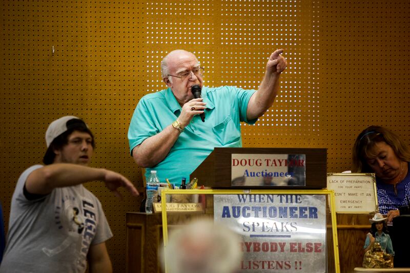 On a recent day at his regular weekly consignment sale at Doug's Auction in Ogden, he offered a rapid-fire volley of numbers as assistants walking the floor scanned the audience for bidders, barking and pointing when they spotted a would-be buyer.