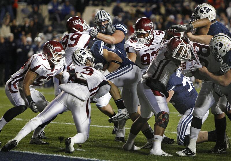 After a somewhat sluggish quarter and a half by the offense, BYU clicked into high gear, and when that happened, the Cougars brushed aside New Mexico State.