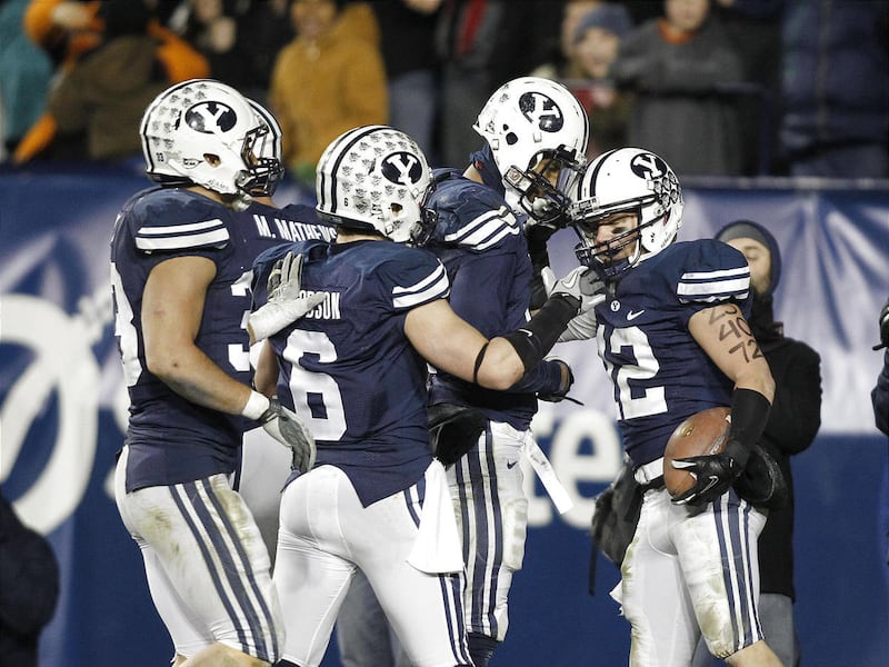 DEFENSE: BYU’s defense gave up a touchdown on a short field after a Heaps’ INT in the first half, but otherwise, the Cougars were really tough on that side of the ball. Kyle Van Noy was his usual playmaking self on Saturday — he had six tackles, two tackles-for-loss and three QB hurries — and he had a whole lot of help around him. Senior linebacker Jadon Wagner forced a fumble and recovered a fumble in his final home game, defensive back Joe Sampson was all over the field and others stepped up and made plays and others shined. GRADE: A-.