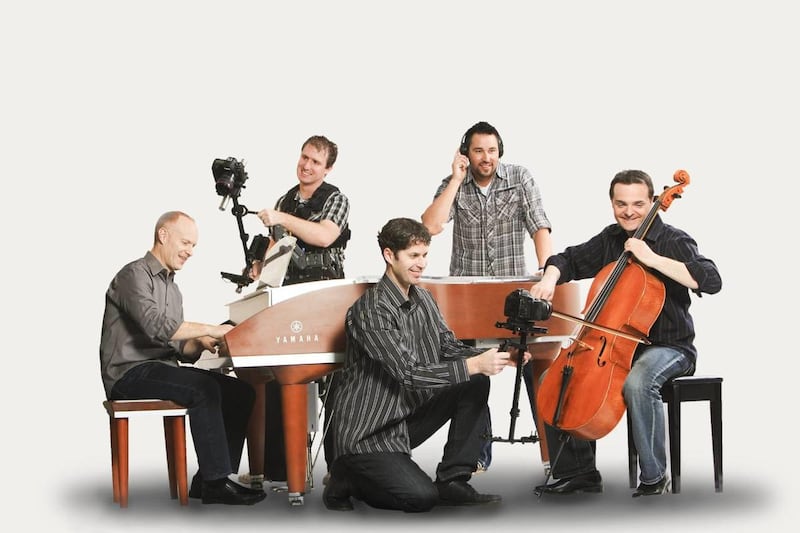 The group, comprised of pianist Jon Schmidt, cellist Steven Sharp Nelson, general manager Paul Anderson, studio engineer co-writer Al Van Der Beek and videographer Tel Stewart, gathered in the front room of Van Der Beek’s home in Sandy, Utah, to discuss its explosive YouTube success. They sat cross-legged on the couch or propping feet up on the coffee table, offering up plenty of animated jokes, teasing, and laughter during the discussion.